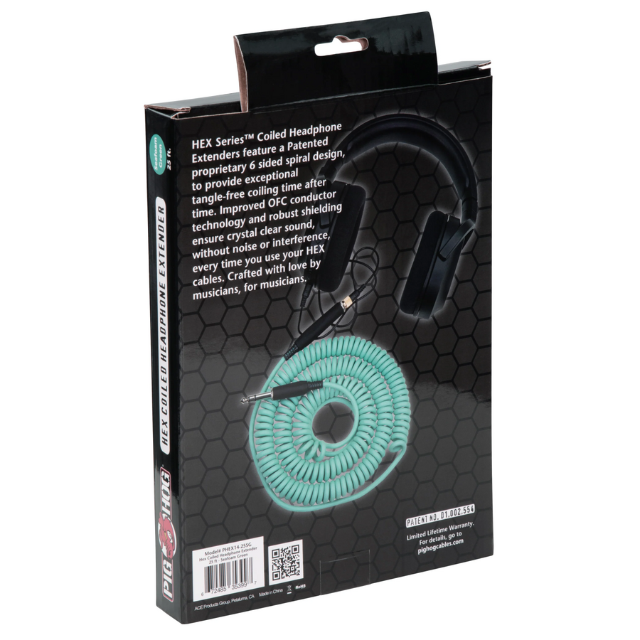 Pig Hog Hex Series Coiled Headphone Extension Cables put a twist on the classic coiled cable design. The cables are light, springy, and easily move with you, keeping your workspace clear of clutter. These coiled cables increase your reach when you need it and bounce back when you don’t, without feeling like you’re tremendously tethered. The patented Hex Series™ represents the pinnacle of cable design, featuring our proprietary 6 sided spiral extrusion process and OFC conductor technology, providing exceptionally tangle free coiling time after time, with best-in-class durability and audio quality. Each cable is hand tested before shipment, and we back up our quality with a lifetime warranty so you can be sure your Pig Hog Cables will be an integral part of your rig for years to come.