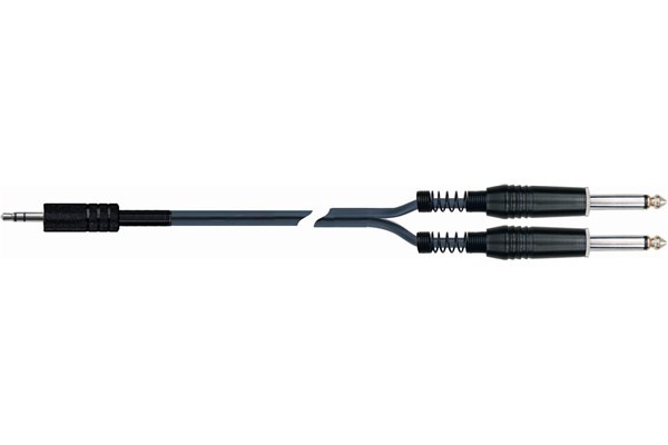 3.5mm straight stereo jack to 2 x 6.5mm straight mono jacks. 3 metre length. Black.