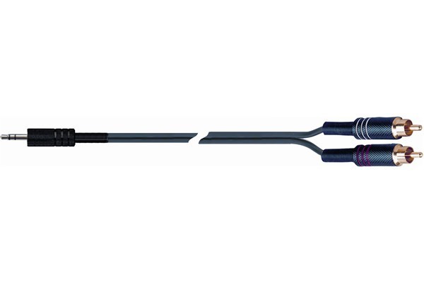3.5mm straight stereo jack to 2 x RCA jacks. 3 metre length. Black.
