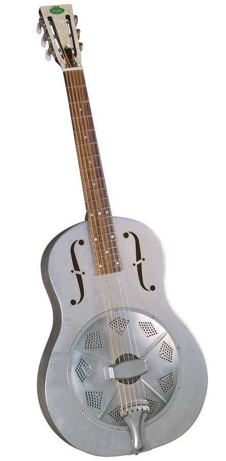 Style: Metal Body Triolian Resonator Guitar Top, Back & Sides: Steel Neck: Mahogany Cone & Spider: Spun 9.5 inch Aluminium Resonator with Biscuit Bridge