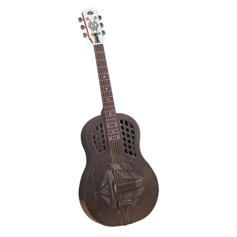 A beautiful aged bronze patina with a texture that sets the RC-58TT apart from the rest! This monochromatic color scheme, which includes cover plate and tailpiece, is set off by the sparkling pearloid peghead veneer with itsÕ colorful Regal logoÑthe same logo that has graced the worldÕs finest guitars for over 70 years. The subtle, understated beauty of the new RC-58TT perfectly matches the beauty of tone and unsurpassed volume that has made the new Regal Tricone series the professional musicianÕs guitar of choice.
