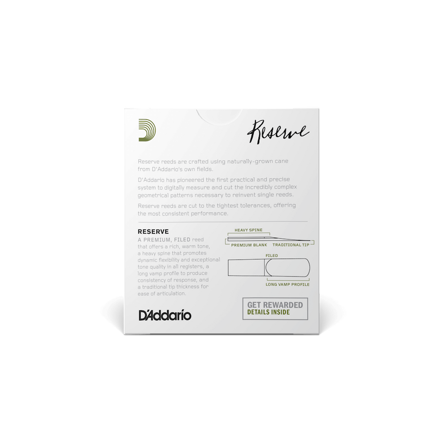 Reserve reeds provide you with dynamic flexibility and exceptional, warm tone quality when playing due to their long vamp profile. These filed reeds feature a traditional tip to give you an ease of articulation and response.