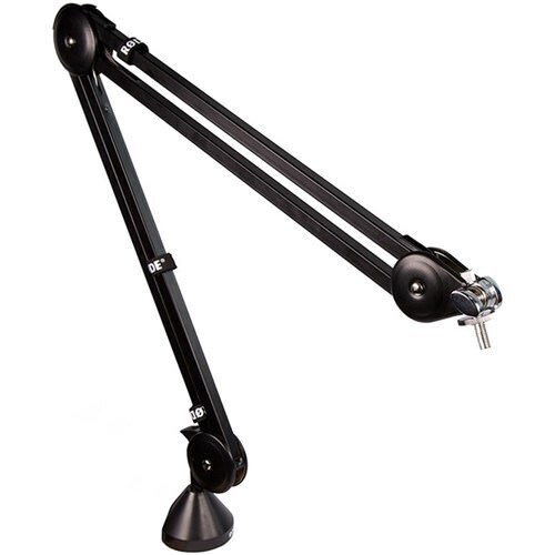 The PSA1 is a studio boom arm for radio, broadcast, studio and home use. The PSA1 offers a horizontal reach of 820mm, a vertical reach of 840mm and full 360 degree rotation. It is supplied with velcro cable wraps and both desk-clamp and desk-insert style attachments for versatile mounting in desks up to 55mm thick (clamp) or 70mm (insert). Designed for the RØDE Procaster and Podcaster, the PSA1 supports most microphones weighing between 700g (1.5lb) and 1.1kg (2.4lb) when combined with shock mount. Please note that the PSM1 shock mount is NOT included.