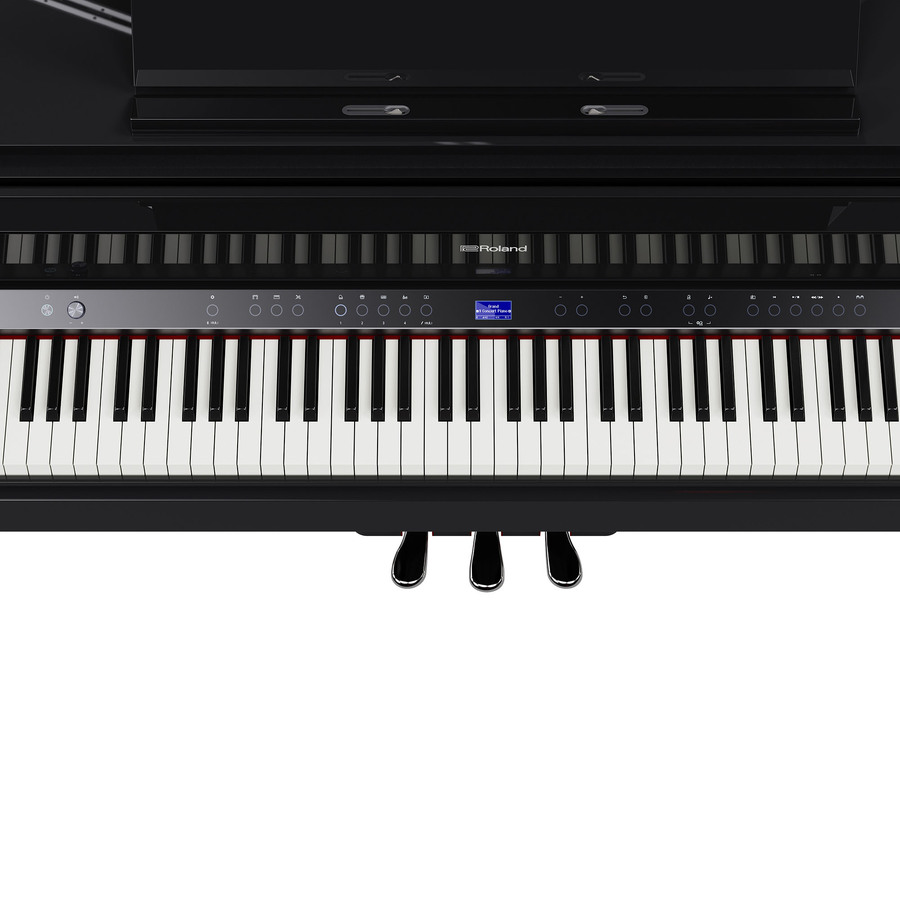 The GP-9 brings you Roland’s premier piano experience, offering refined musical expression in a sophisticated and luxurious instrument that makes a majestic statement in any space. Elegant curves and finely crafted details project the bold look of a world-class acoustic grand, while the advanced technologies inside deliver the touch, tone, and sound projection to match. You also get a world of modern benefits that flow with today’s lifestyles, including low-maintenance operation, onboard learning tools, Bluetooth® connectivity, and much more.