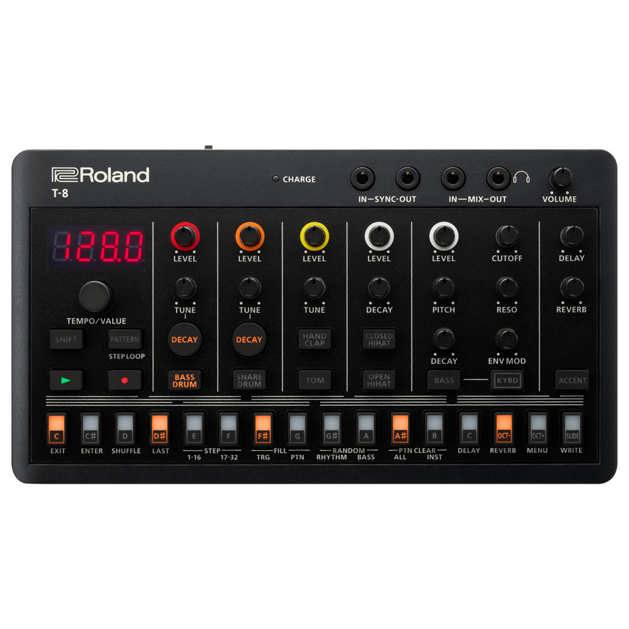 Build beats with the boom, pop, and sizzle of sounds from the TR-808, TR-909, and TR-606 drum machines, paired with the shapeshifting low end of the dynamic TB-303 Bass Line. The T-8 exudes classic Roland character, thanks to the same Analog Circuit Behavior (ACB) tech found in the TR-8S, TB-3, and other high-end AIRA gear.
