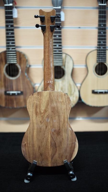 This concert ukulele has a more traditional shape, but features an enlarged lower bout and very deep sides, giving amazing depth and power to the sound of this instrument. It sounds like a tenor ukulele but is indeed a concert! Designed by Pepe Romero Jr.