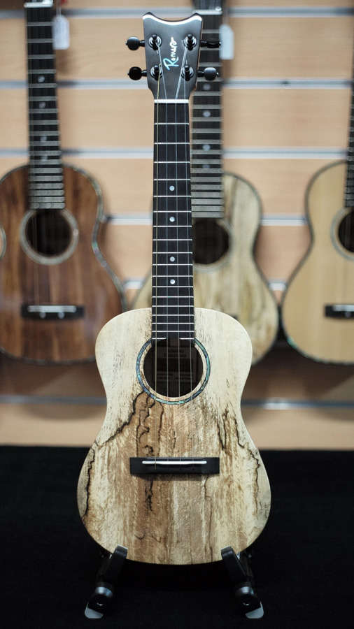 This concert ukulele has a more traditional shape, but features an enlarged lower bout and very deep sides, giving amazing depth and power to the sound of this instrument. It sounds like a tenor ukulele but is indeed a concert! Designed by Pepe Romero Jr.