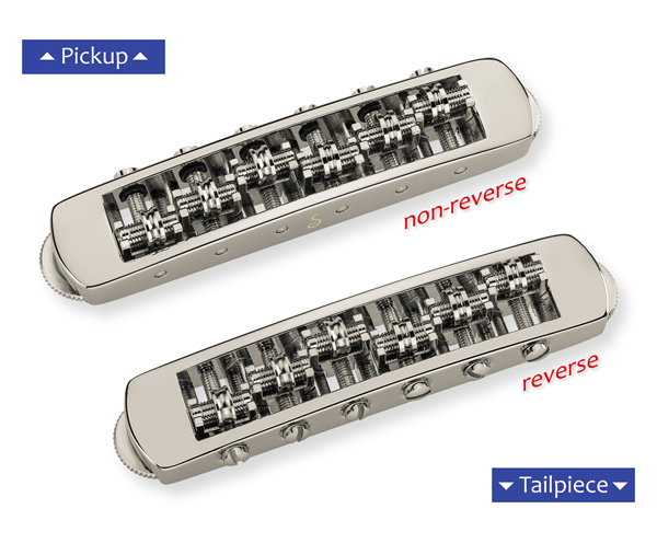 Compatible with post spacings from 74.0 - 74.5 mm Adjustable for height, intonation and string spacing Low-friction roller saddles for excellent tuning stability – perfect for Bigsby™* vibratos Comes with 2 different type saddle rollers to suit tone and string bending requirements: V-shaped for high strings and U-shaped for low strings Saddles are from brass Optional: 2 rollers per space for 12-string guitar Slant angle to be determined by guitarmaker based on scale length and string gauge. (*Les Paul is a protected trademark owned by Gibson Musical Instruments Corporation Bigsby is a protected trademark owned by Fred Gretsch Enterprises).