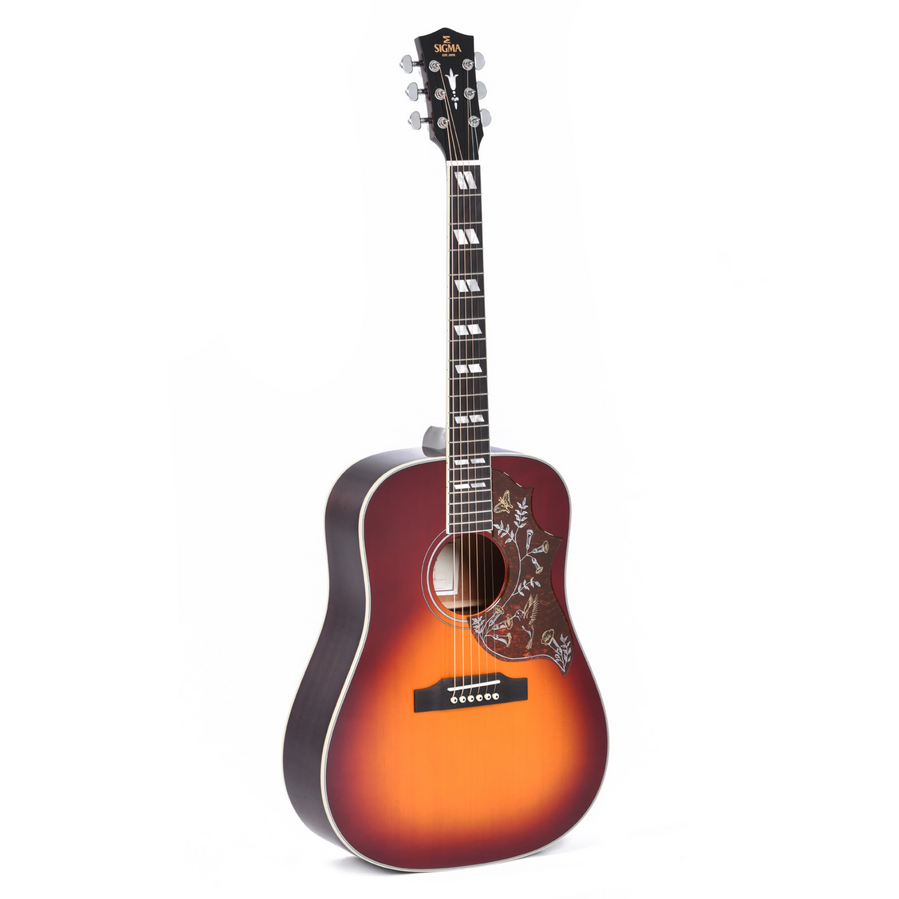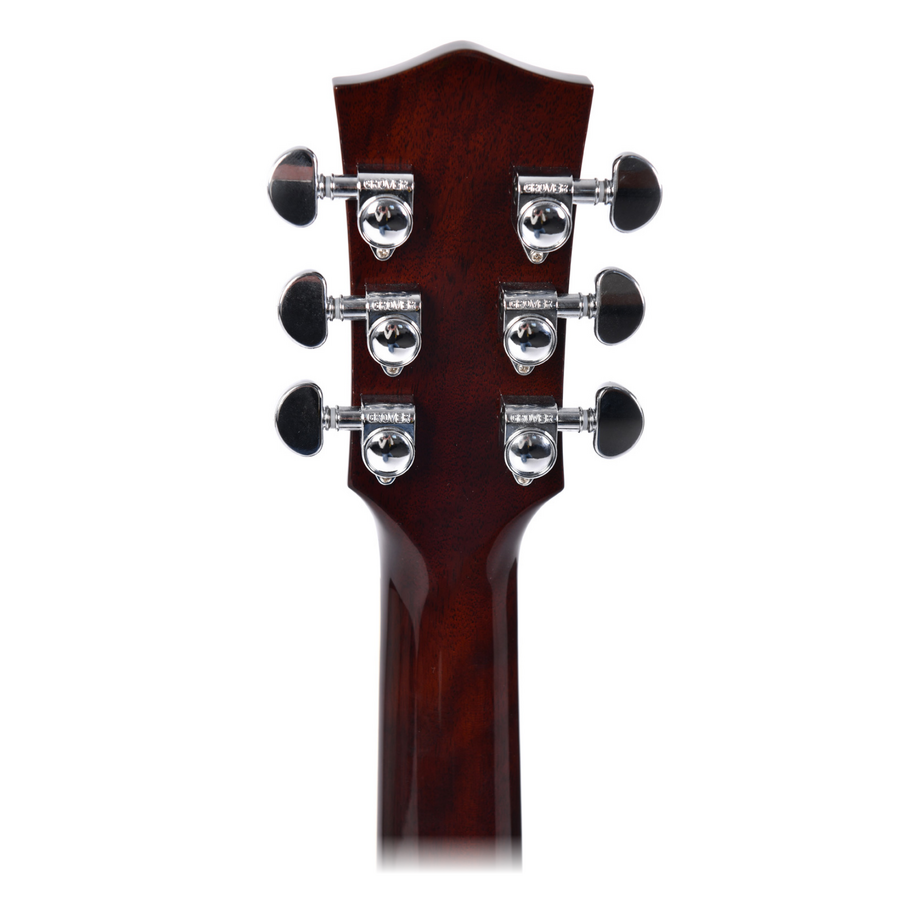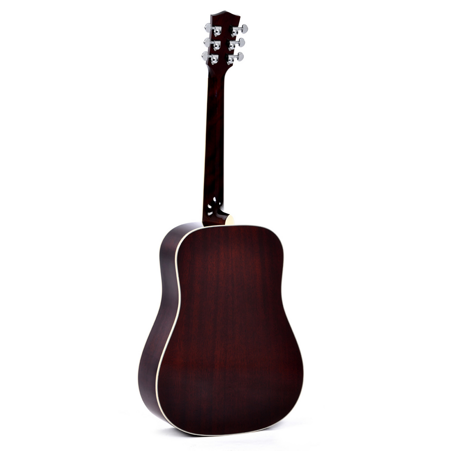Body Size: D-14 Fret Construction: Dovetail Neck Joint Top: Solid Sitka Spruce Back & Sides: Mahogany Neck: Mahogany, Low Profile Nut & Saddle: Bone Fingerboard & Bridge: Ebony Scale Length: 24.75” (628 mm) Neck width at nut: 1-3/4” (44,5 mm) Truss Rod: Two way Truss Rod Tuning Machines: Chrome, Grover diecast Electronics: Fishman Sonitone Finish: Polished Gloss w/ Autumn Burst Soft Case: SSC-D included Strings: D´Addario EXP16