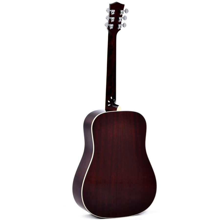 Body Size: D-14 Fret Construction: Dovetail Neck Joint Top: Solid Sitka Spruce Back & Sides: Solid Mahogany Neck: Mahogany, Low Profile Nut & Saddle: Bone Fingerboard & Bridge: Ebony Scale Length: 24.75” (628 mm) Neck width at nut: 1-3/4” (44,5 mm) Truss Rod: Two way Truss Rod Tuning Machines: Chrome, Grover diecast Electronics: LR Baggs EAS-VTC Finish: Polished Gloss w/ Autumn Burst Soft Case: SSC-D included Strings: D´Addario EXP16
