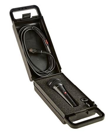The SDM20J is a Dynamic Microphone packaged inside a black die cast metal chassis.