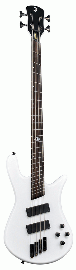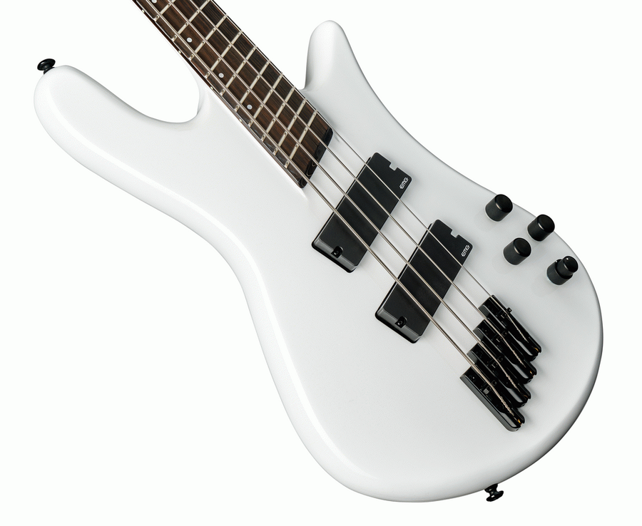 Classic Spector neck-thru construction with illuminating side dots, wrapped in a sleek and stage-ready White Sparkle, Solid Black, Metallic Plum, or Gunmetal Grey gloss finish.