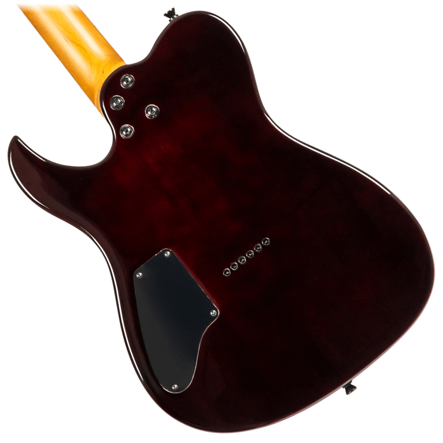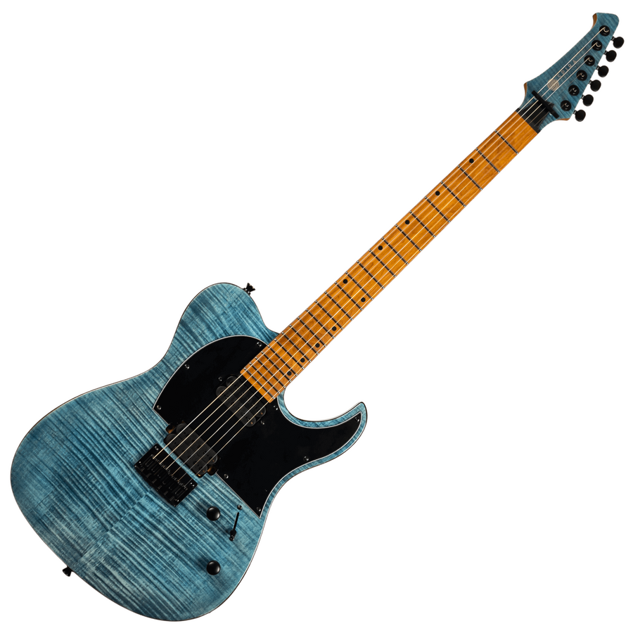 Finished in Trans Blue the T-450 features an eye-catching flamed maple top combined with a roasted poplar body and Canadian roasted maple neck. Its Ebony Tech fretboard, equipped with 24 jumbo frets, ensures a smooth and responsive playing experience suitable for a variety of advanced techniques.
