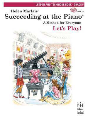 Grade 5 expands on the concepts form earlier levels and presents new ones: sixteenth-note patterns, seventh chords, finger independence, voicing, augmented triads, rubato, and asymetrical rhythms. Students continue to learn about the different eras of music, and refine their skills of pedaling, finger substitution, and musical terminology so they can play beautifully and intelligently. New keys are E-flat major and C minor. Seven touch releases are presented through various technical exercises and pieces, and correct technique is reinforced.