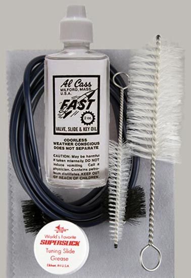 Pack Includes:Untreated Polish ClothAl Cass Valve OilSuperslick Tuning Slide GreaseVinyl Cleaning SnakeBrass Mouthpiece BrushLarge Valve Casing BrushMaintenance Instructions.