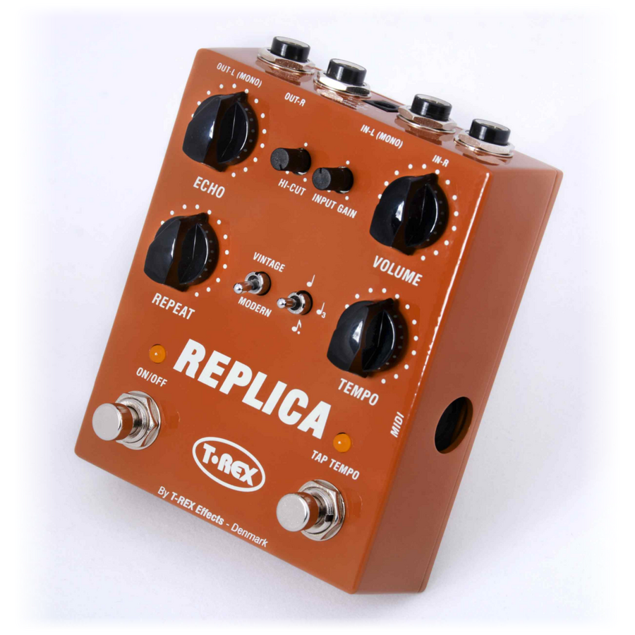 As an extra feature, we have added a ¨Modern mode¨ dedicated to musicians who are searching for a more open sound with clear repeats. T-Rex Effects has always combined the best from the analogue and digital worlds. While the core of the new Replica is digital, the direct signal and feedback circuit are pure analogue. In our world, this is the ultimate way to go if you want an immediate response and dynamic sound. The repeats can be divided into quarter notes, triplets and dotted eights.