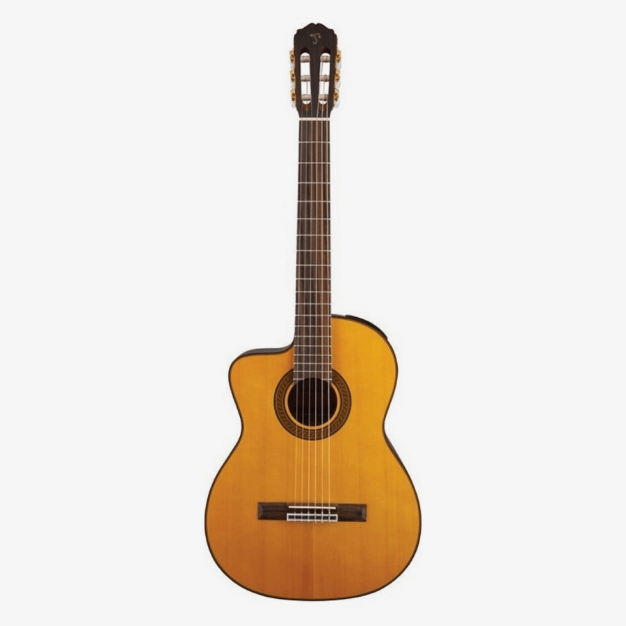 Ready for the demands of any performance situation, the TGC5CE features a fan braced solid spruce top and rosewood back and sides that produce warm, rich nylon string sound. The slim mahogany neck and rosewood fingerboard provide great feel and playability, while the onboard Takamine TP4T preamp system gives you a built-in tuner with three band EQ and gain controls for rock solid amplified performance and versatility.
