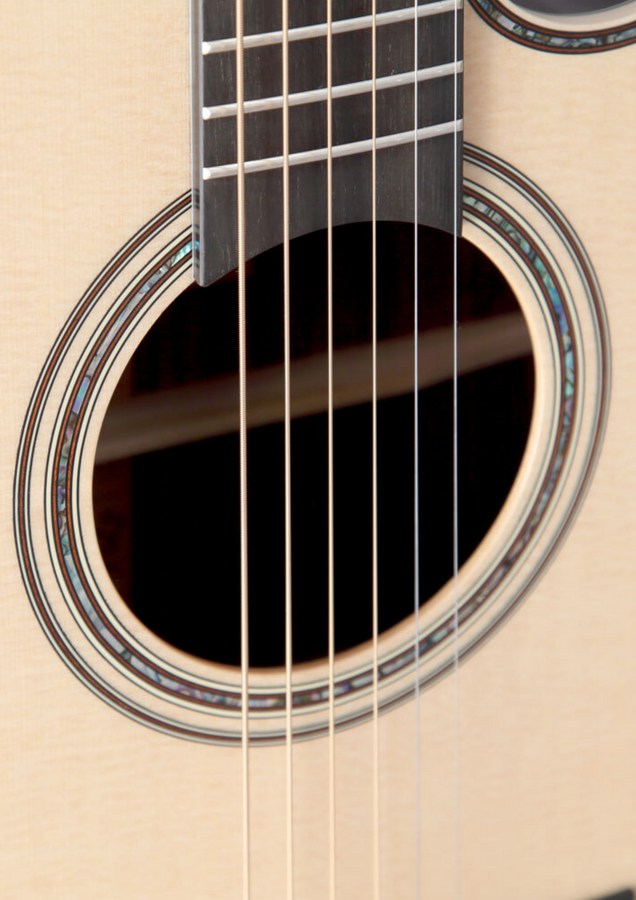 The underlying theme of the Supernatural series is understated elegance. Satin finish provides durability and lasting beauty. Gold tuning machines with amber pearl buttons further add to the premium look of the instrument. All Supernatural series tone-woods are hand-selected, premium grade timbres. A solid sitka spruce top, supported by scalloped X bracing, is voiced for power, deep lows, sweet mids and a cutting high end. An excellent choice whether you play solo or in a full band environment ... this guitar does it all. A solid Indian Rosewood back aids in projection. A pinless bridge makes string changing a breeze.