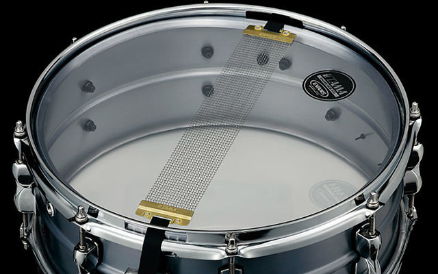 This drum features a seamless 1.2 mm Aluminum shell with a center bead. The 8-lug Steel Mighty Hoops make for a crisp sound with short sustain. The vintage look and sound are reminiscent of the early years of popular aluminum snare drums.