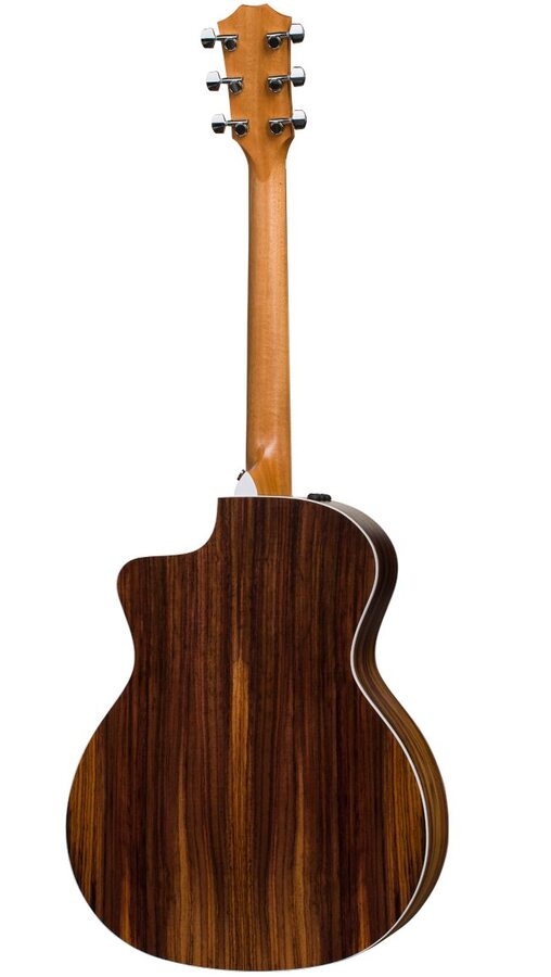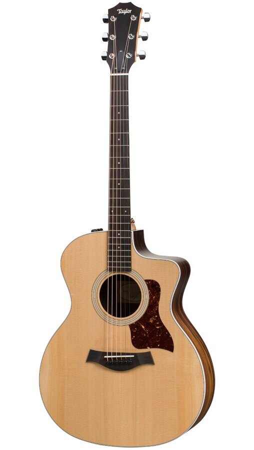 Grand Auditorium guitars from the 200 Series have always been a hit with players of all skill levels and styles, and the latest edition of the 214ce brings more of the crisp acoustic tone and smooth feel that musicians have come to expect from a Taylor. Layered Walnut forms the back and sides here, with a solid Sitka spruce top that helps this guitar produce vibrant highs and a resonant, warm low end. That tonal balance makes this guitar an all purpose musical tool, versatile enough to pump out powerful cowboy chords and articulate enough to perform beautifully in more subtle styles such as flatpicking or fingerpicking. Appointments include crisp white binding, a three-ring rosette, and a Venetian cutaway for easy access to the higher notes on the fretboard. The guitar ships with ES2 electronics for organic, clean tone in amplified situations, and comes with a sturdy padded gig bag.