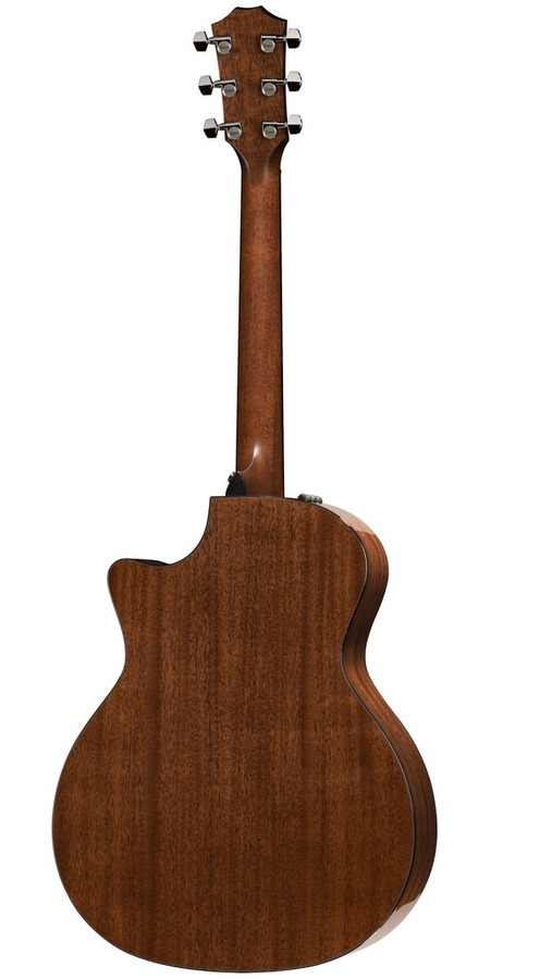 Cedar’s warm midrange overtones and quick response make it a coveted top wood among fingerstylists and other players with a lighter touch. On this mahogany/cedar cutaway Grand Auditorium, V-Class bracing lifts those sonic virtues to new heights, serving up an even more powerful all-around response with billowing sustain. Add to that the bundle of sonic refinements that V-Class brings, including more powerful notes all the way up the fretboard and greater in-tuneness between the notes (thanks to a more orderly response from the top), and you’ve got a guitar that can cover a lot of ground. Mahogany’s naturally dry, focused voice emphasizes the midrange, lending a warm, clear punch that strummers, blues players will especially appreciate.