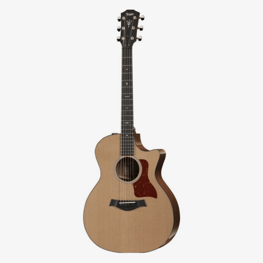 Appointments include faux tortoise shell binding and pickguard, a faux tortoise/ivoroid rosette, and our striking Century fretboard inlay scheme in grained ivoroid with a new peghead inlay to complement the motif. With onboard Taylor ES2 electronics, you can count on natural-sounding amplified acoustic tone whenever you need it. The guitar also features a Venetian cutaway for upper-fretboard access, and ships in a deluxe hardshell case.