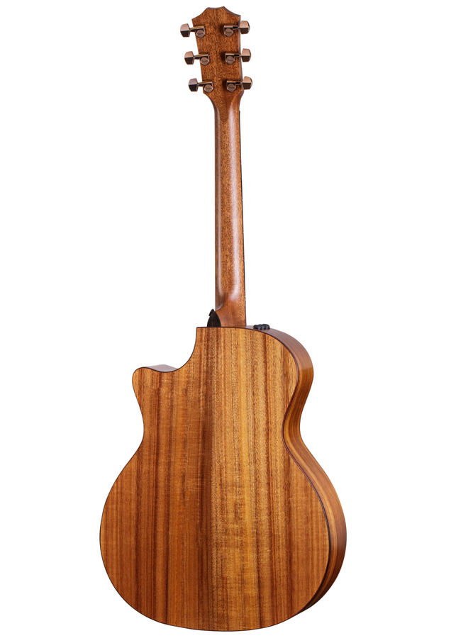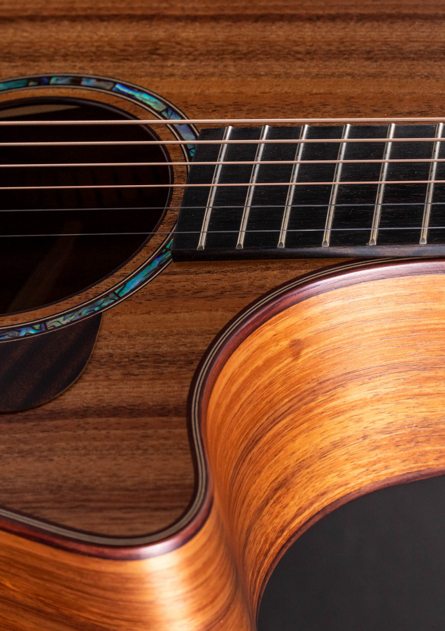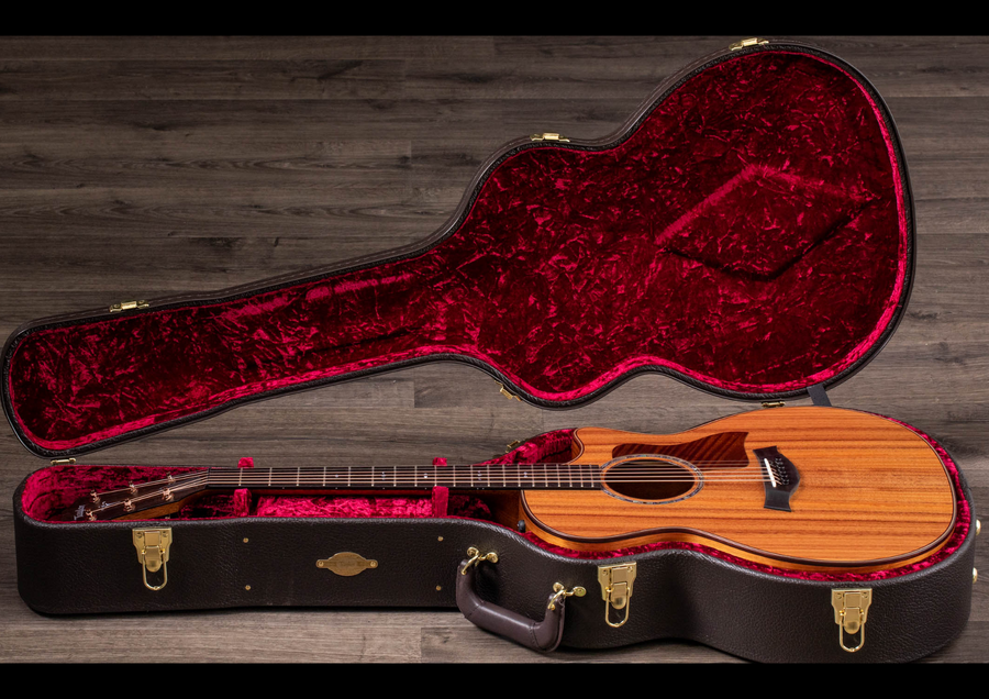The all-new 724ce launches a new era for the Taylor 700 Series, introducing Select-grade Hawaiian koa to this popular family of acoustic guitars. This Grand Auditorium boasts back, sides and top of solid Hawaiian koa selected for its visual beauty as well as its punchy, lively musical response. You’ll hear a bold attack with an energetic tone profile that yields crisp trebles, a rich midrange and a low end that grows in over time. The super-thin matte finish makes for a raw feel and aesthetic that’s complemented by mother-of-pearl Fountain inlays, rosewood binding, a paua shell rosette and a dark-stained maple pickguard. It includes the ES2 acoustic pickup and a deluxe hardshell guitar case for storage and protection.