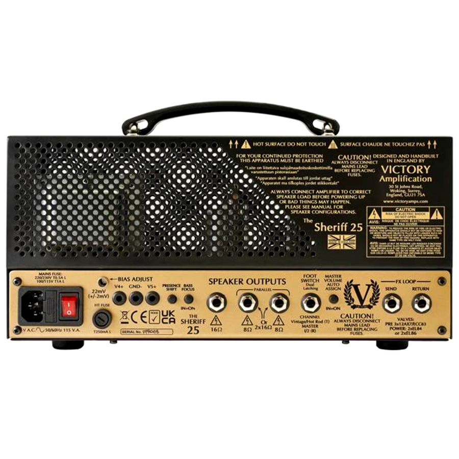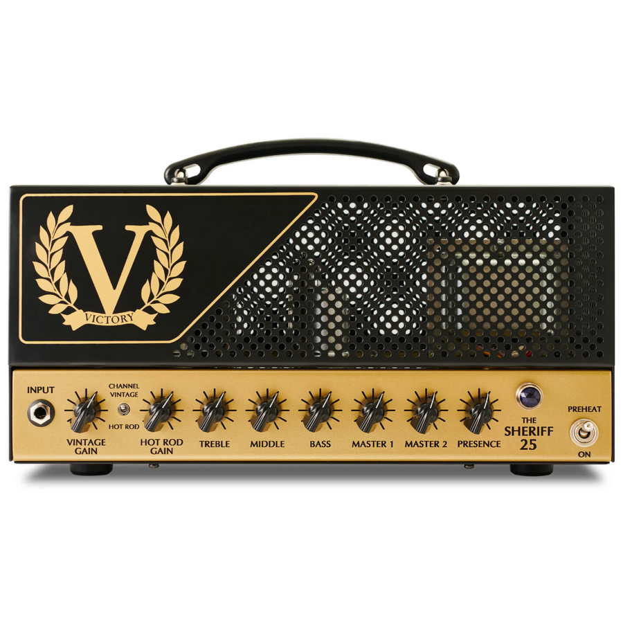 The Sheriff 25 is about maximum sound and minimum fuss, this 25 watt compact head has two channels of all-valve classic British rock tones, from the 60’s-style classic rock and blues through to the hot-rodded, 70’s and 80’s heavy rock sounds.