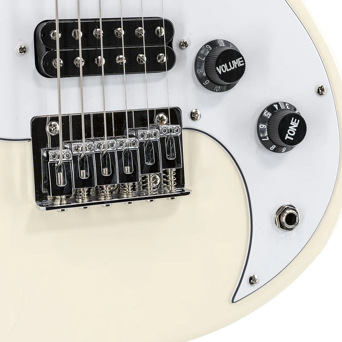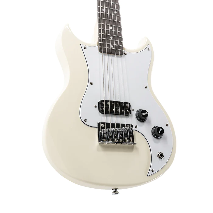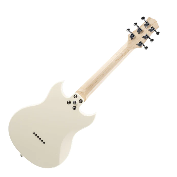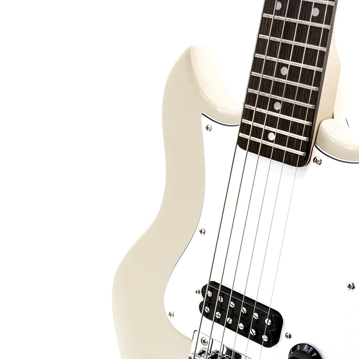 Play your favourite riffs at the park, the subway, or the tour bus! The new VOX SDC-1 mini provides the sound and feel of a full sized electric guitar in a compact format. Play with the same tuning as a standard guitar but on a 479mm short scale format. It also features high gear ratio tuning heads especially designed for short scale guitars to allow easy and accurate tuning. White finish, carry bag included.