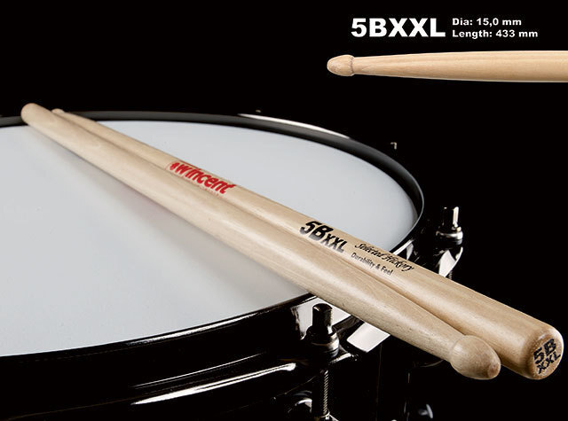 The sticks are treated with our famous UWP (Unique Wax Protection), weighted and pitched in pairs. On top of this, all Wincent sticks have the model-code printed on the butt-end of the stick for easy identification in your stick bag or in your local Music store. Red printed means maple, black for hickory. This has been a Wincent trademark since 2002.