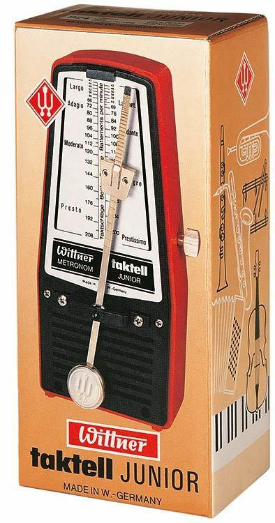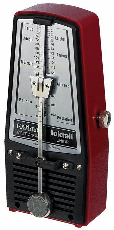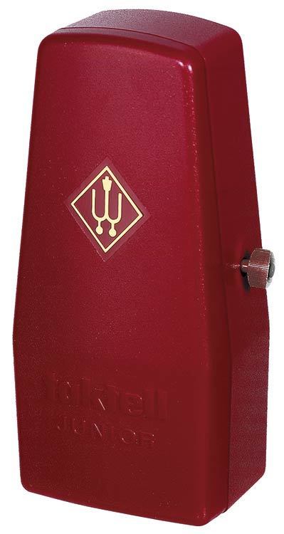 Plastic casing, Ruby colour, without bell metronome with a mechanical clockwork, No batteries required, Made in Germany.