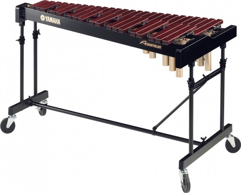 Concert Xylophone YX-500F Acoustalon model. The new 500 Series is available in both Acoustalon and Rosewood and will replace the YX-335 Acoustalon and the YX-350A Rosewood xylophones. The 500 Series xylophones come with two-position resonator slots and features new bar sizes for consistent tone quality throughout the range of the instrument. Its gas shock height adjustment frame allows easy, effortless adjustment by the player. Offering a full, authentic wood sound with new size of bars, the new series features a foldable frame for transport and easy set up.